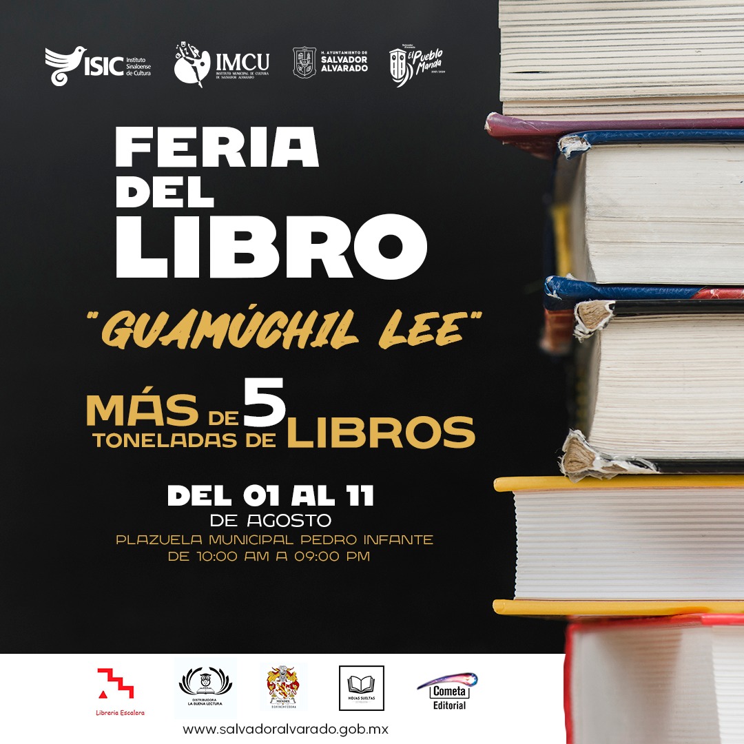 Culiacán, Sinaloa – Dentro del 115 aniversario de la ciudad de Guamúchil, se estará realizando la Feria del Libro “Guamúchil lee”, misma a realizarse del 01 al 11 de agosto del presente año de 10:00-21:00 horas.