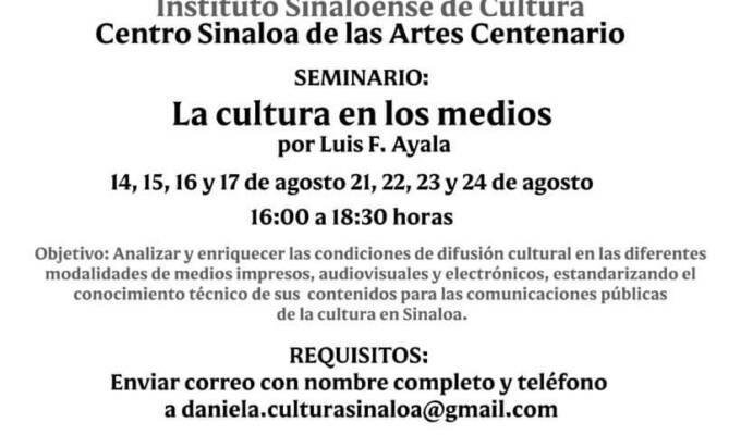 Sinaloa – El Instituto Sinaloense de Cultura lanza invitación para el Taller de Patrimonio Cultural y Creación Literaria llamado “Es mi orgullo ser de Culiacán” y el cual tendrá una duración de 5 días con lecciones de 2 horas por día, siendo estos de 17:00-19:00 horas.