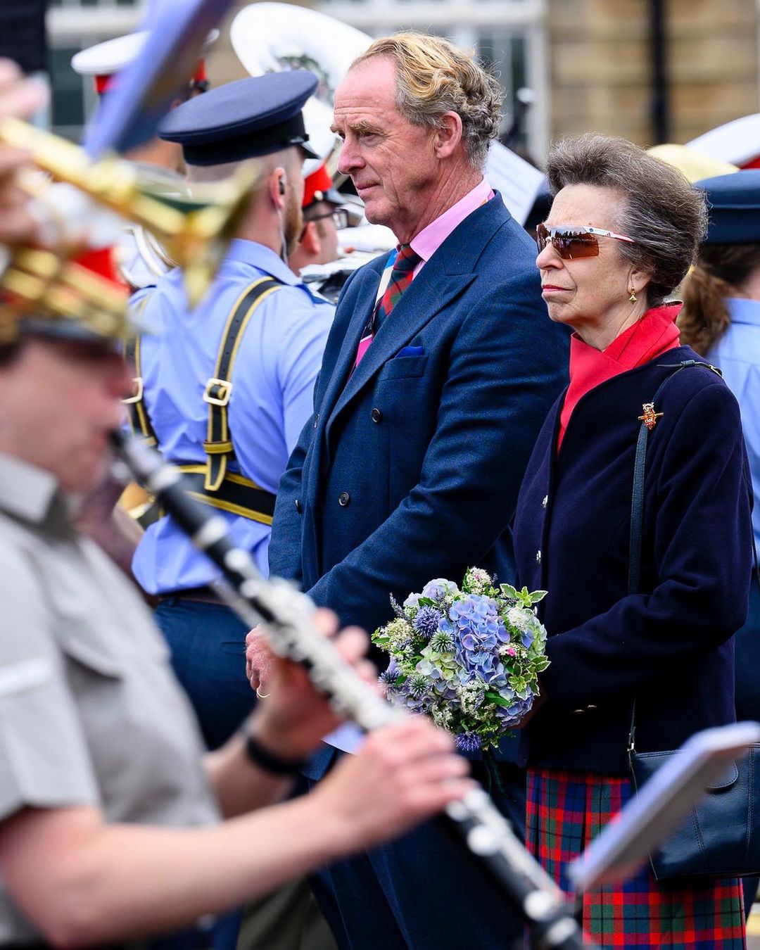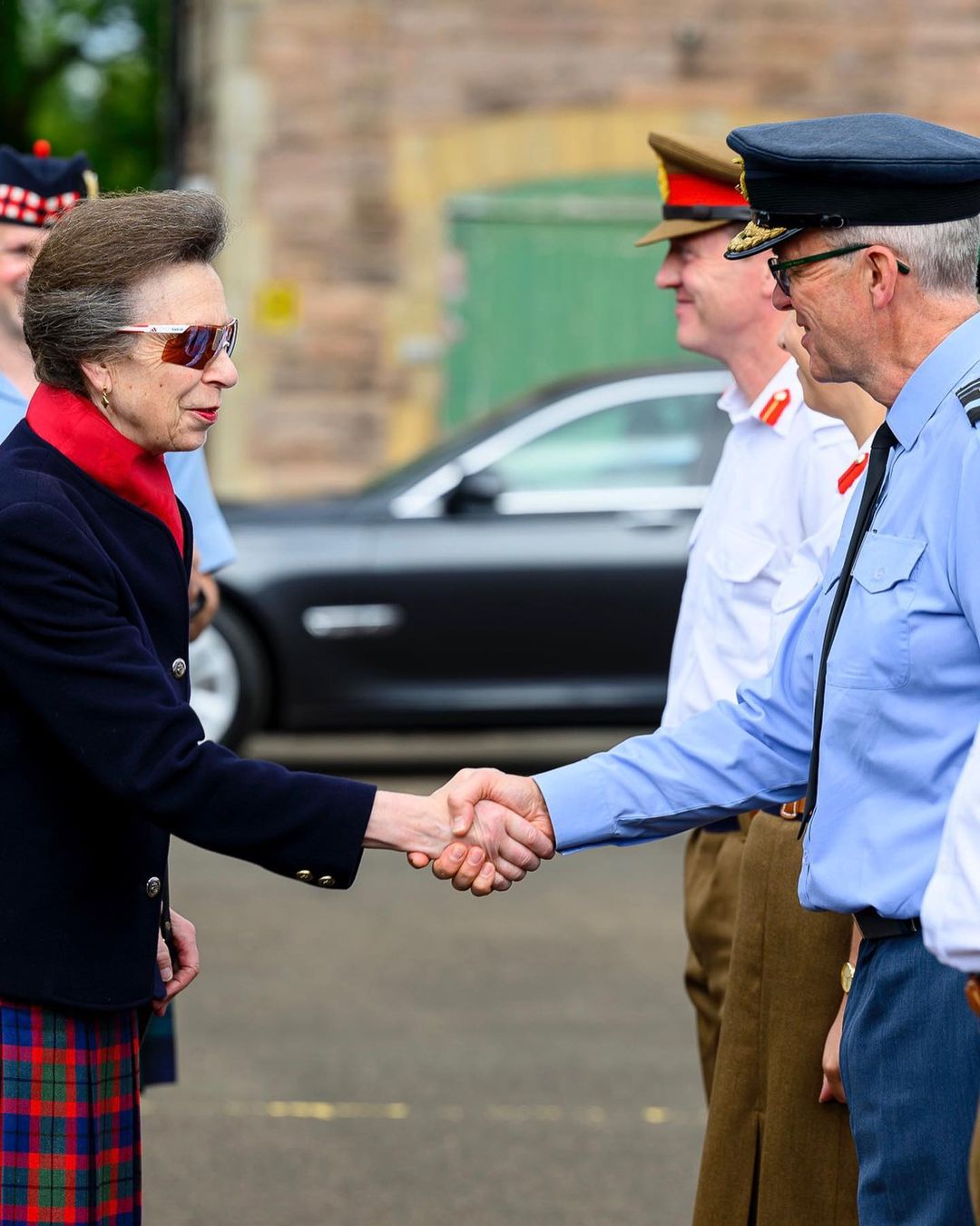 Edimburgo – Anne Elizabeth Alice Louis, Princesa Real Ana del Reino Unido y hermana del Rey Carlos III del Reino Unido, se trasladó a Redford Barracks, donde presenció el último ensayo de The Royal Edinburgh Military Tattoo previo al desfile anual.