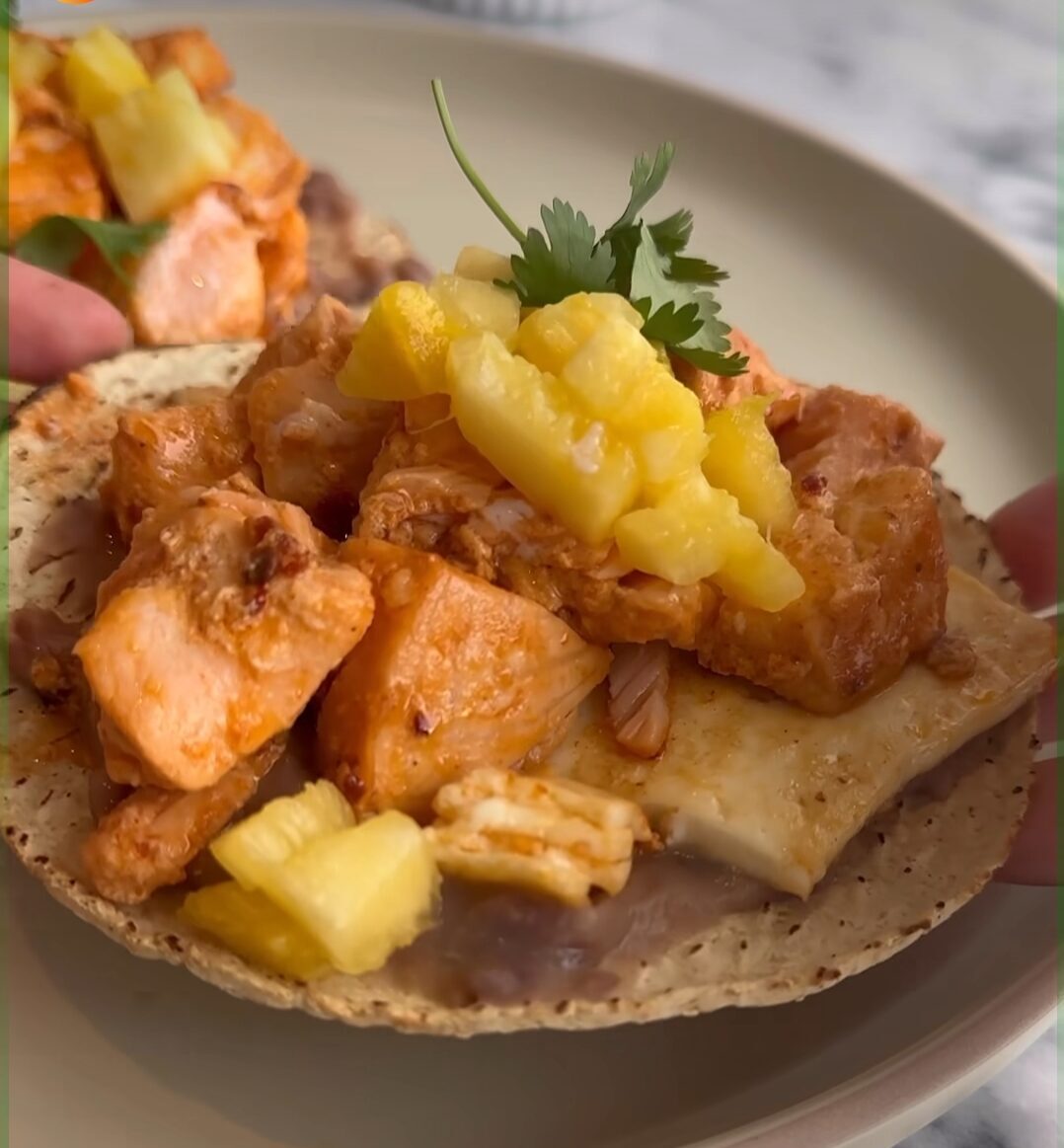 Y en uno de sus últimos reels, subió una rica receta de una tostada de salmón al chipotle y con ella los ingredientes y preparación para que te salga como a ella.
