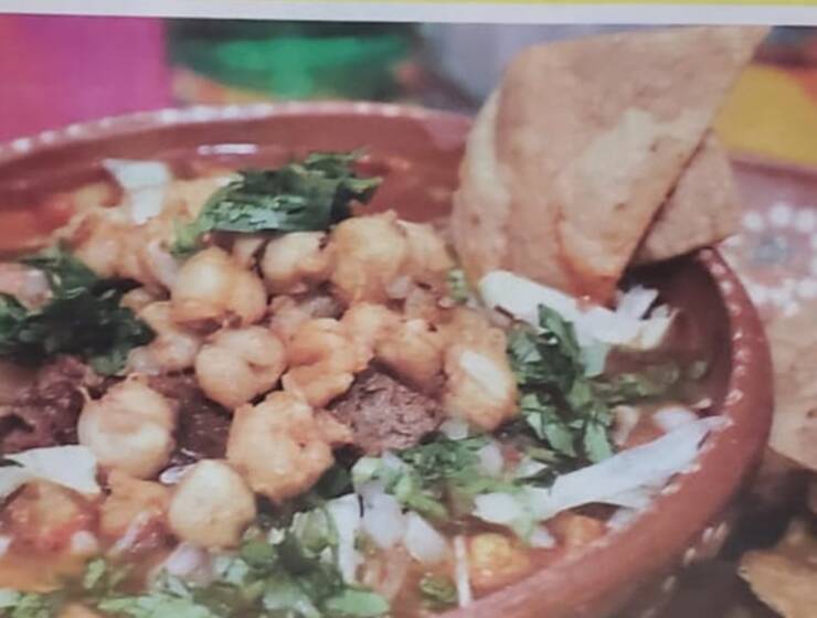 Los Mochis, Sinaloa.- Pozole de puerco con salsa roja, un platillo meramente mexicano hecho a…