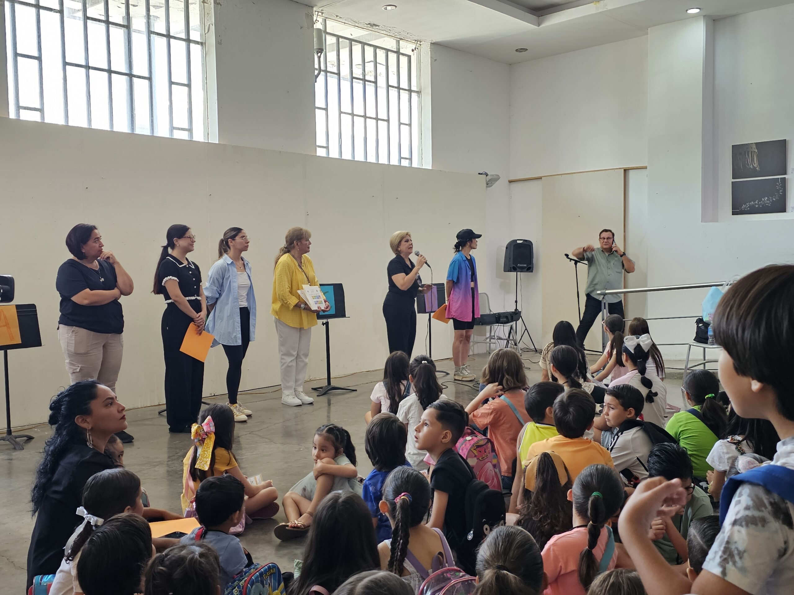 Evento en el que se reunieron cada uno de los niños entre 5 y 12 de años que se inscribieron para formar parte de los talleres de artes plásticas con la maestra Rosali Sánchez, el de teatro con la maestra Marcela Beltrán, el de música con la maestra Miroslava Aguilar y el de expresión corporal con la maestra Edylin Zatarain.
