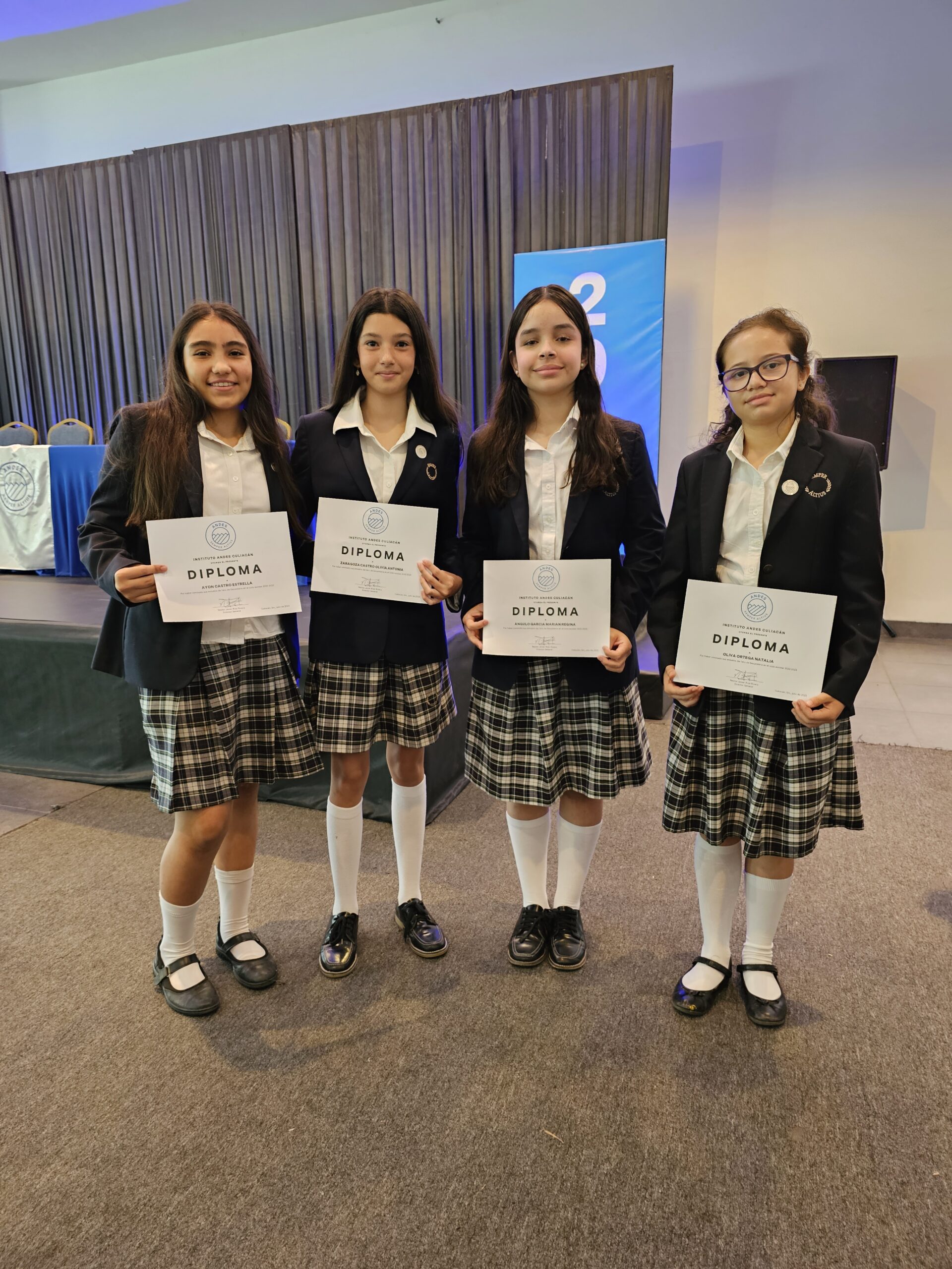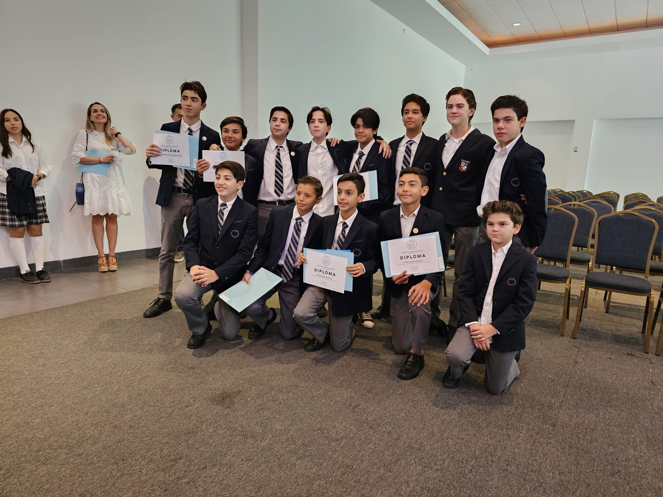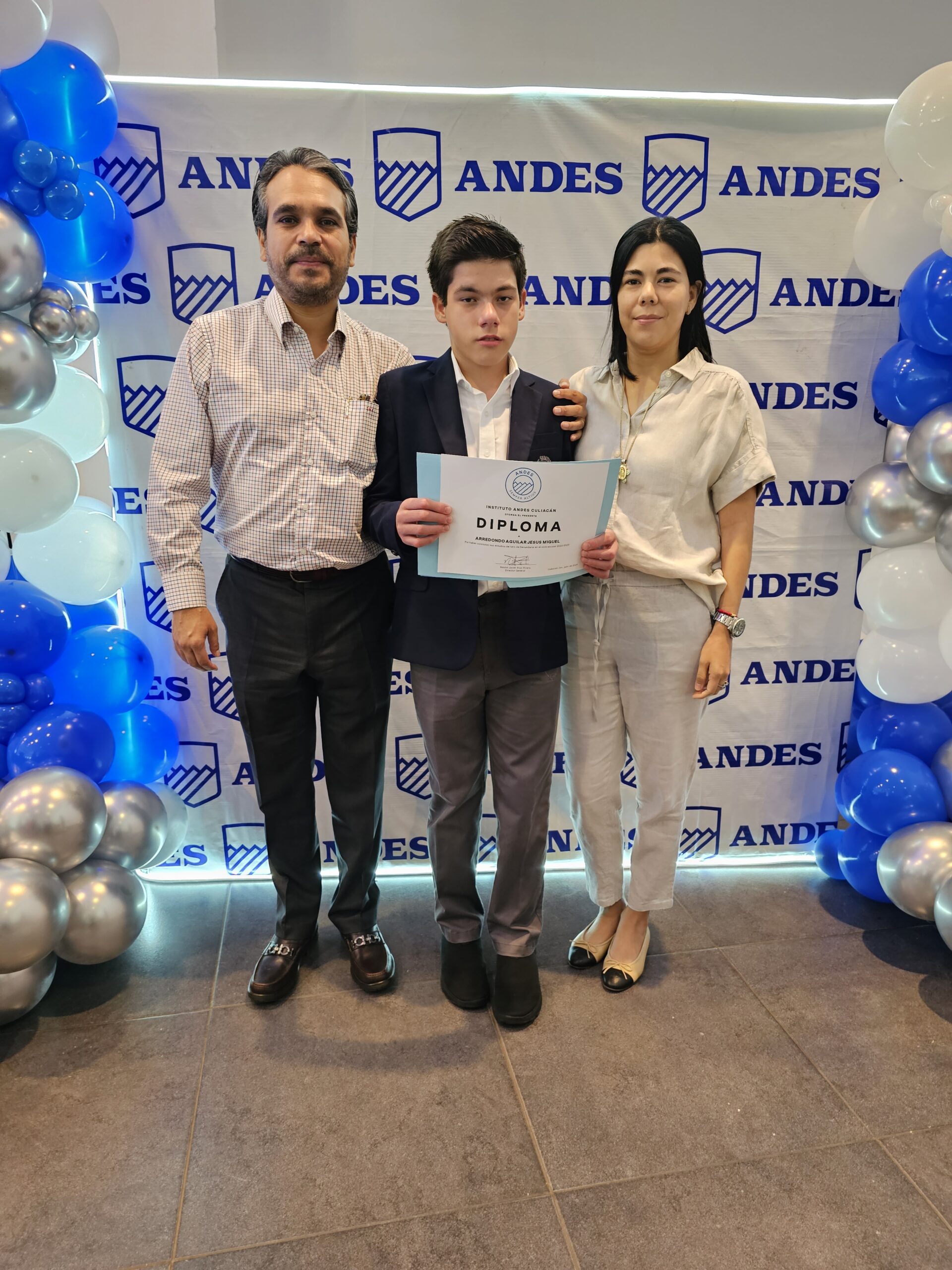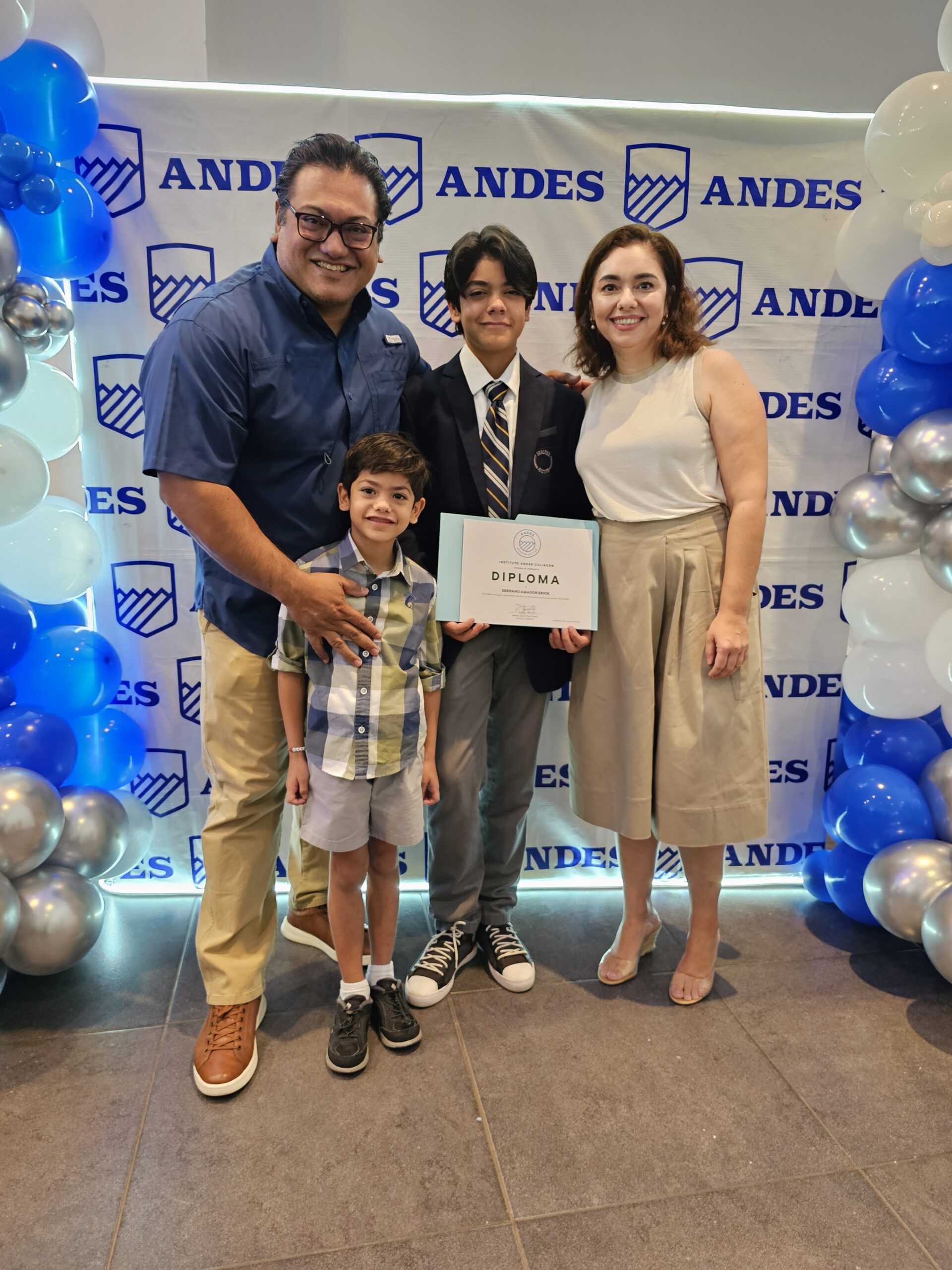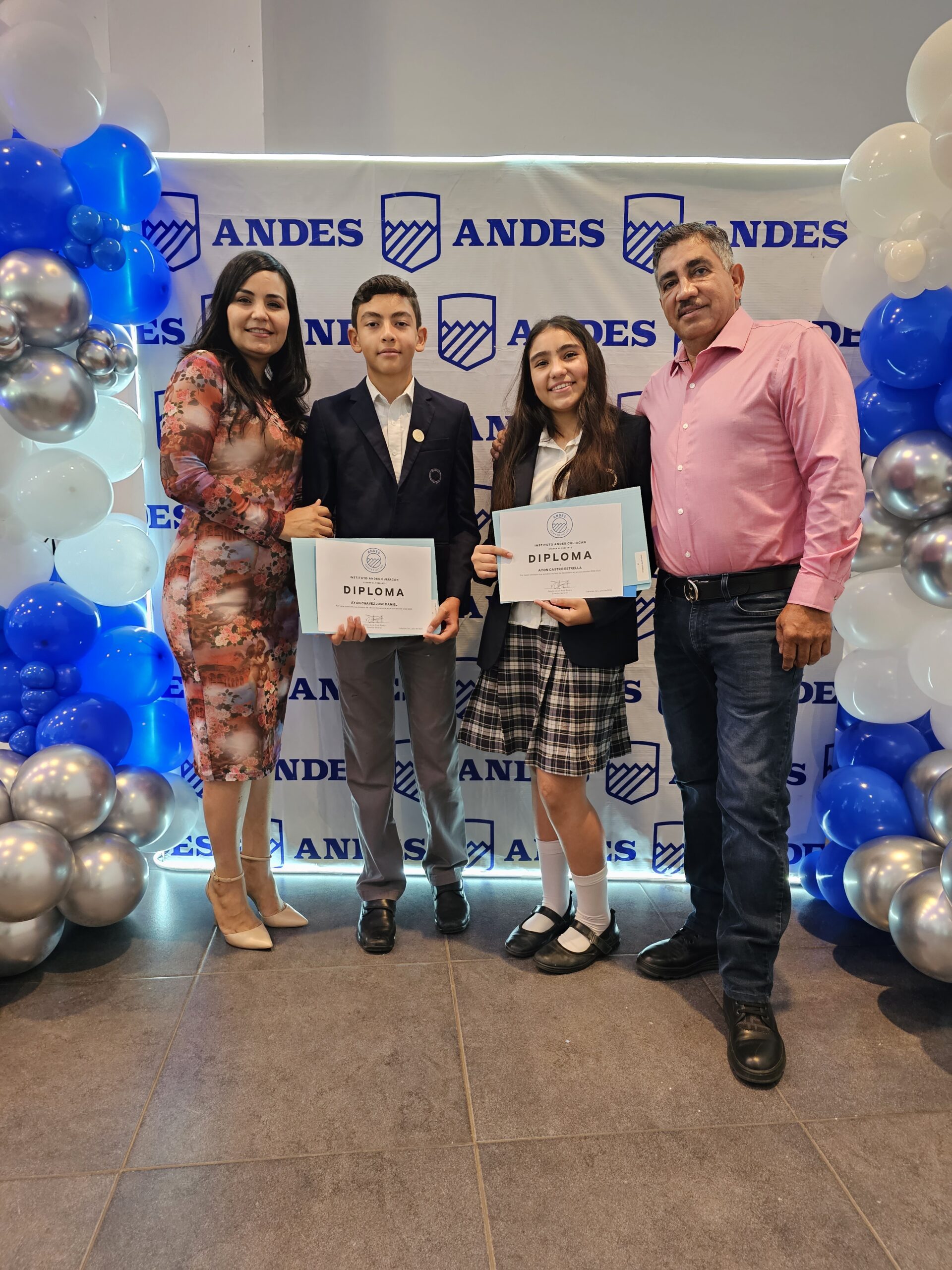 Erika Castro, José Daniel Ayón, Estrella Ayón y José Guadalupe Ayón. Foto: Mariana Félix.Emilio Medina y Amanda Salazar. Foto: Mariana Félix.María Belem Rico, María Inés Zazueta y Miguel Ángel Zazueta. Foto: Mariana Félix.Foto grupal de los egresados de 1ro de secundaria. Foto: Mariana Félix.Maestros de secundaria del Instituto Andes. Foto: Mariana Félix.