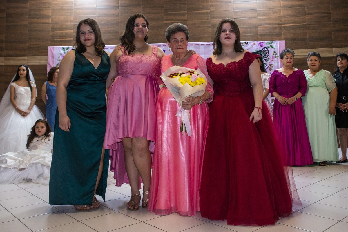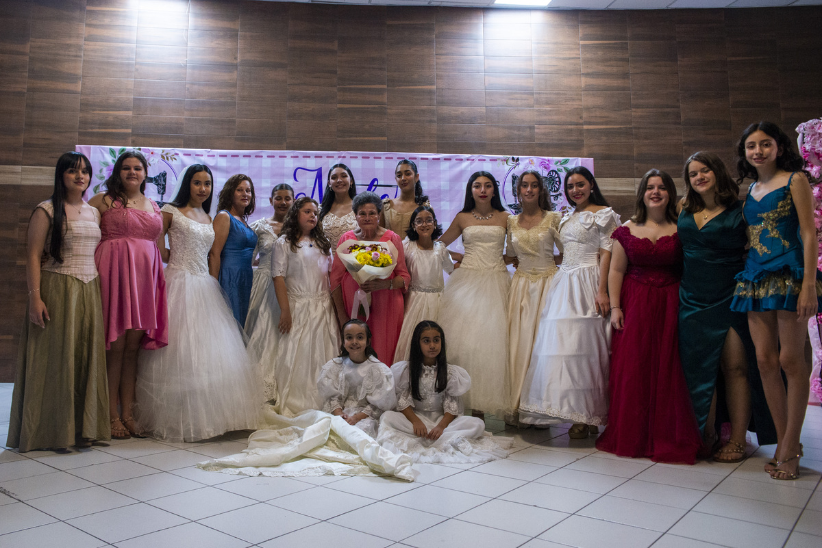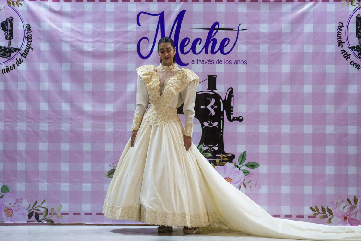 Durante el evento, se proyectó un video con decenas de clientas portando sus vestidos hechos a mano por Meche. Al final de la pasarela, Meche, como le dicen de cariño, agradeció la preferencia que le han otorgado a sus hermosos diseños tanto familiares como amistades en estas casi siete décadas de trabajo artesanal.