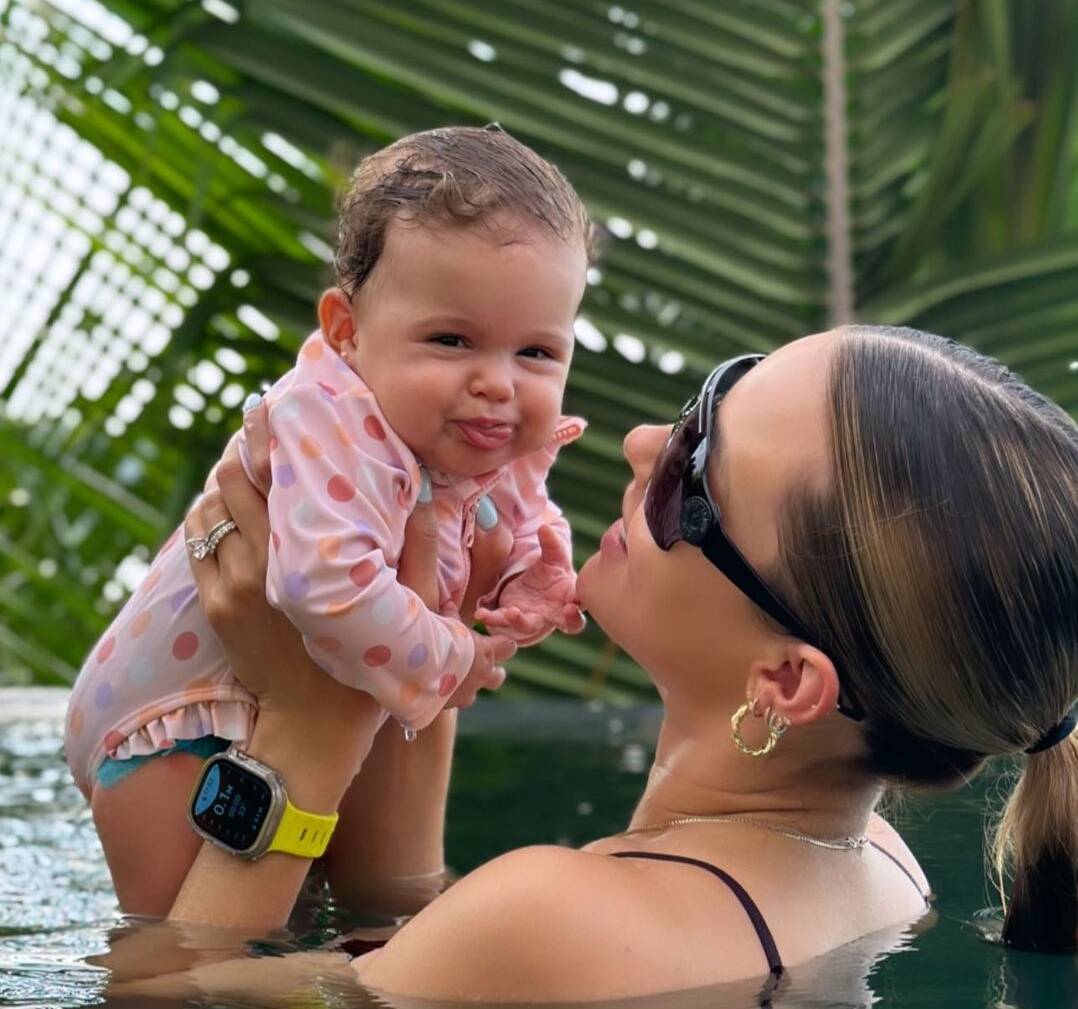 Y en uno de sus tantos días de descanso, se dieron a la tarea de empezar el día gozando de un chapuzón en la alberca. Mismo al que se les unió baby Mariel.