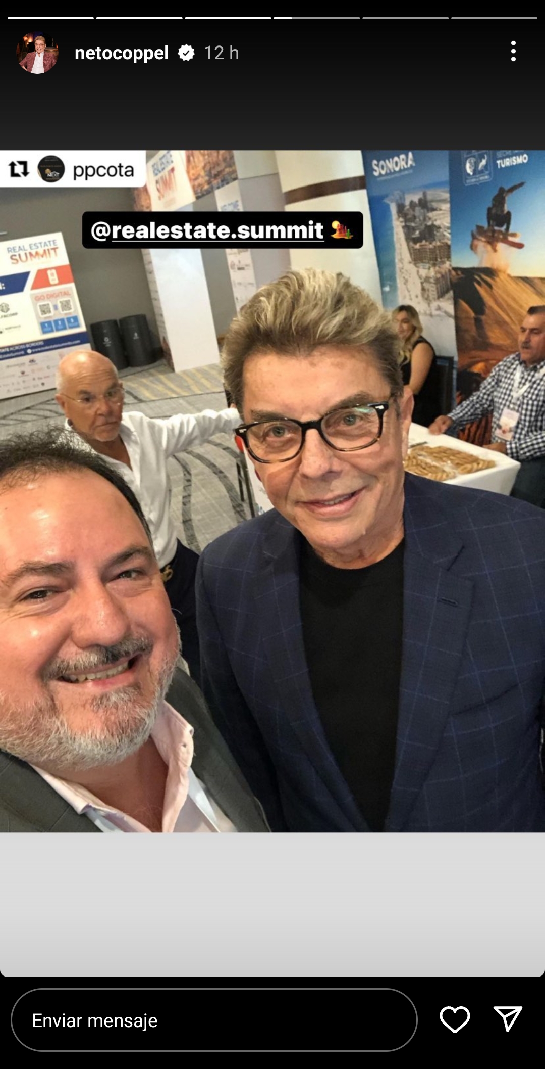 Y al publicar su presencia en esta convención, por medio de un post en la cuenta de Instagram @realestate.summit, se le presentó con el siguiente mensaje: ¡VISIONARIO, ATREVIDO Y GENEROSO! @netocoppel Ernesto Coppel, presidente del Grupo Pueblo Bonito Golf & Spa Resorts @pueblobonito presentará la conferencia “Turismo y Bienes Raíces”. Con millones de dólares en inversiones, reconocimientos internacionales y gran pasión por compartir sus conocimientos, ¡esta es una conferencia que no querrás perderte!.